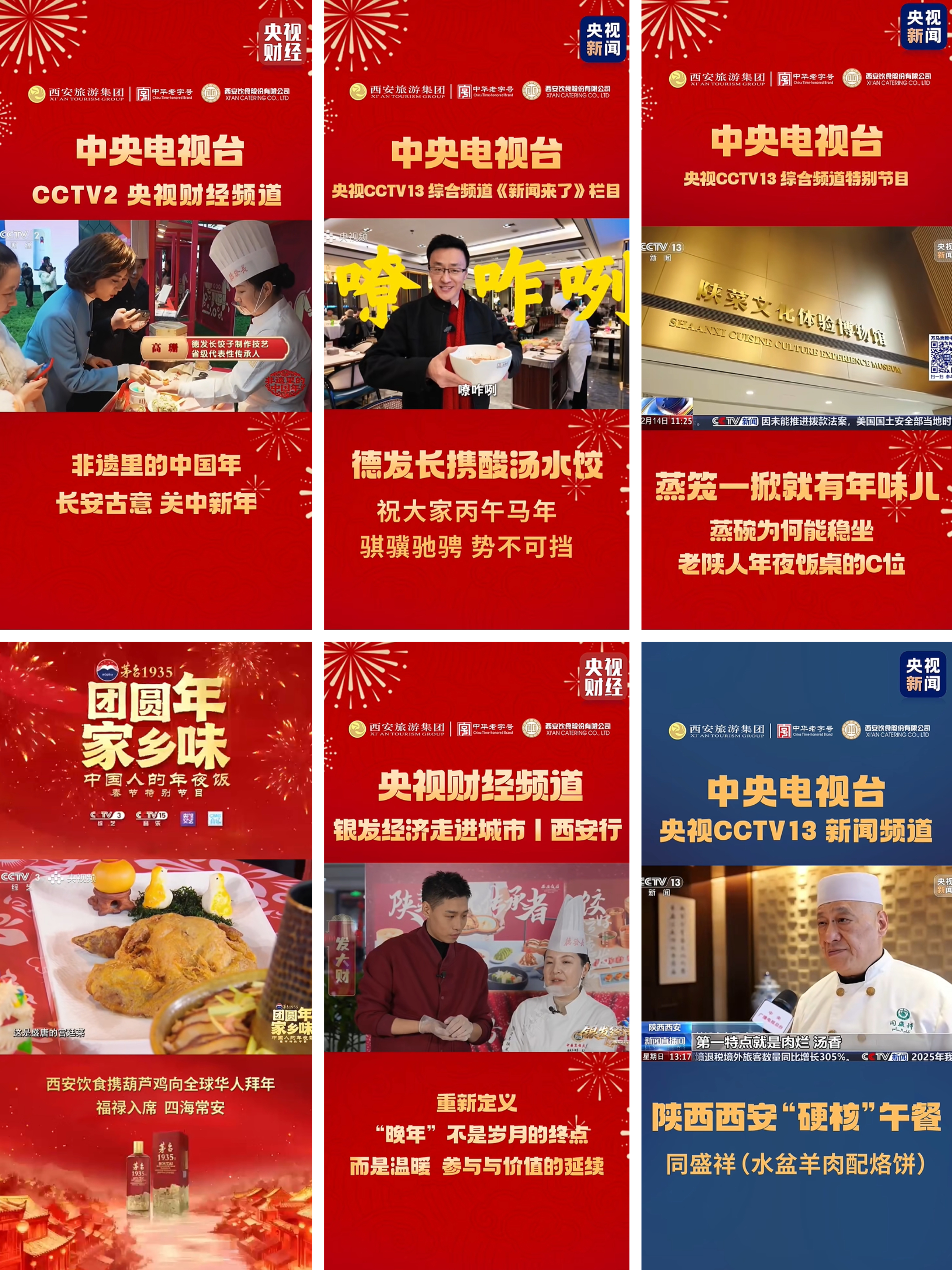 春節(jié)期間,西安飲食獲央視六大欄目多次報道,同盛祥水盆羊肉、西安飯莊葫蘆雞等亮相《我的午餐》《團(tuán)圓年家鄉(xiāng)味》等節(jié)目;德發(fā)長餃子技藝于《非遺里的中國年》展示,并在除夕央視春晚倒計時環(huán)節(jié)向全國觀眾拜年。新華社刊發(fā)《老字號闖新路》,聚焦陜菜文化體驗博物館,全網(wǎng)傳播量超180萬;中國新聞網(wǎng)報道《八道蒸碗真豪情 關(guān)中“硬菜”迎客來》,獲國際媒體轉(zhuǎn)載,助推陜菜文化出海?!蛾兾魅請蟆奉^版頭條肯定其文化營銷創(chuàng)新,省市級媒體形成全媒體傳播矩陣,總瀏覽量破億。